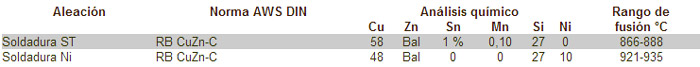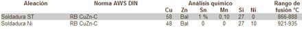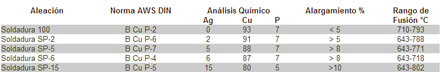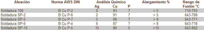 Aleaciones cobre fósforo y cobre fósforo con plata Para la soldadura fuerte a baja temperatura del cobre y sus aleaciones