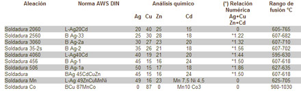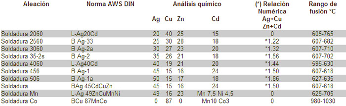 Aleaciones con plata para la soldadura fuerte a baja temperatura Para soldar cobre-aleaciones de cobre con material ferroso